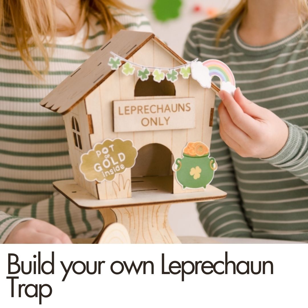 - Build-Your-Own Leprechaun Trap – A hands-on wooden craft kids build and decorate together.