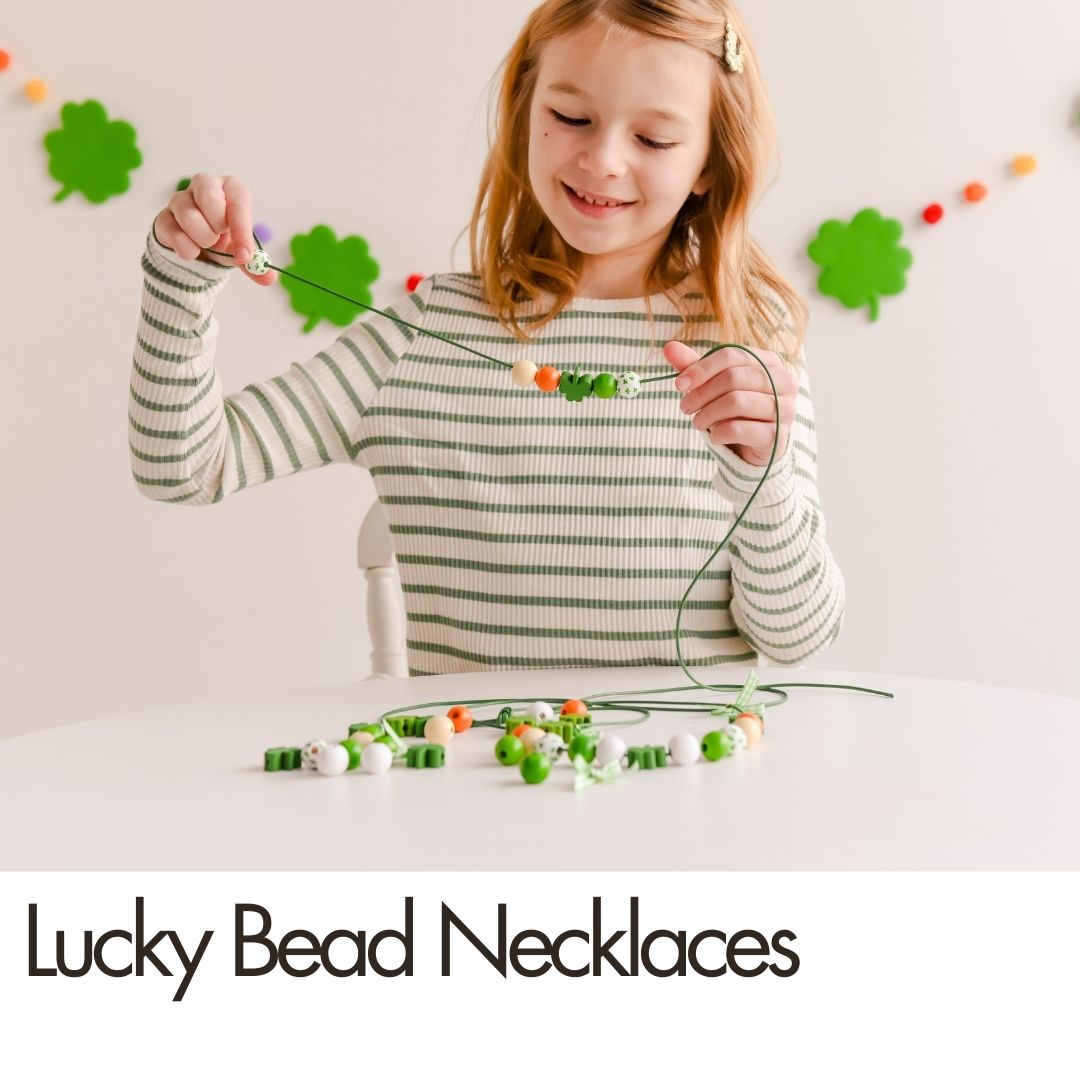 - Lucky Bead Necklaces – Create festive green accessories kids can wear all day.