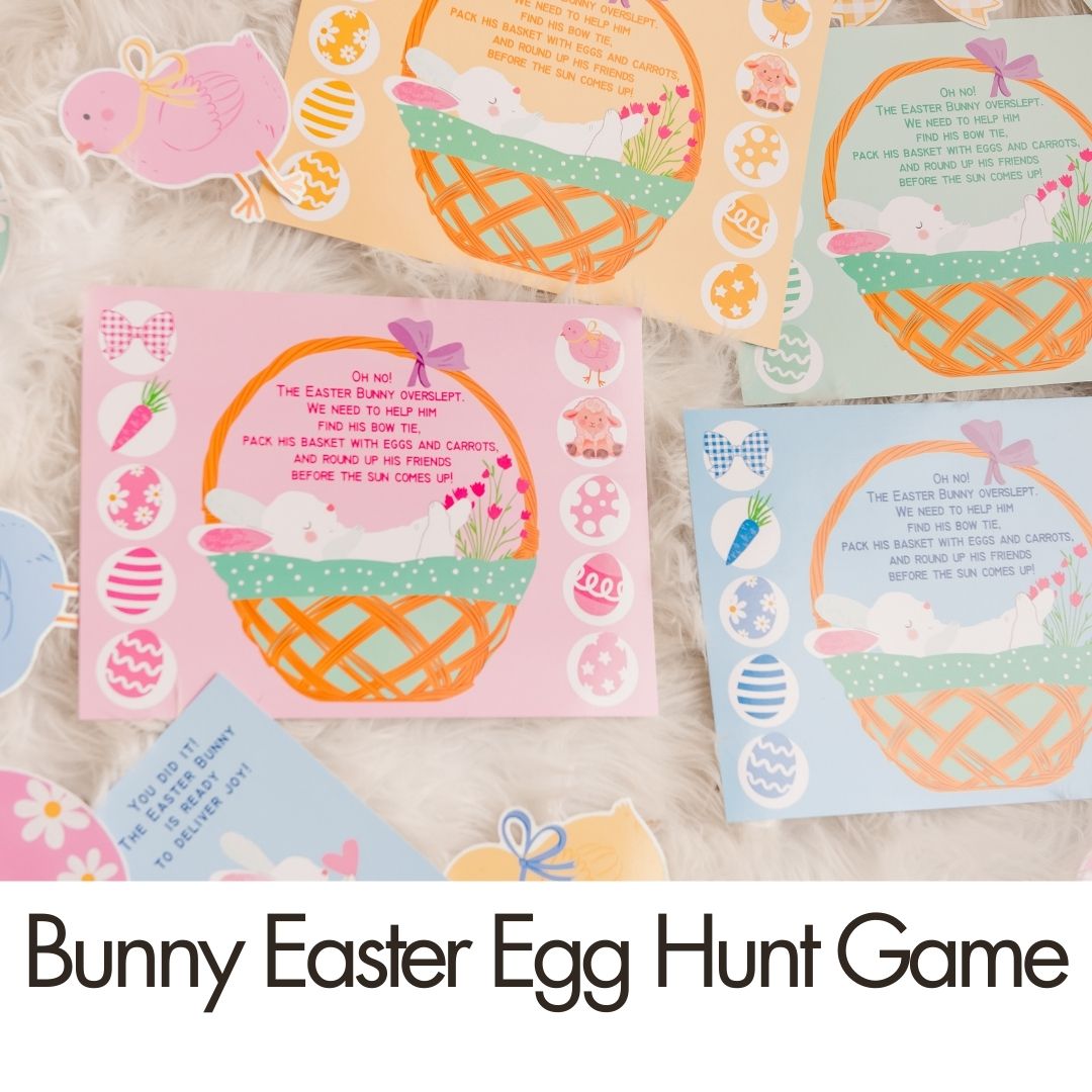 Turn your egg hunt into a playful family game as kids help the Easter Bunny collect everything needed for Easter morning.